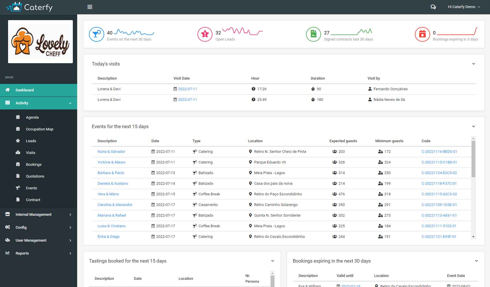 Visits management to venues, bookings and events, all integrated in a single place. Is easy to change the lead status until the contract.
